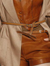 Многим дизайнерам в этом сезоне классические решения показались слишком скучными. В итоге были созданы неожиданные вариации на тему простого кожаного ремня. У Trend les Copains, Nina Ricci, Stella McCartney и некоторых других кожаные ремни также многослойные: поверх очень широкого идет более узкий, а все вместе напоминает по форме японский пояс оби. Givenchy, Hermes или Dries Van Noten также с успехом используют эту форму, однако предлагают еще и сочетание разных материалов: один из этих "слоев" в ремне выполнен из кожи, а второй - из плотной ткани (например, из натурального шелка, причем не только монохромного, но и с цветочными принтами).